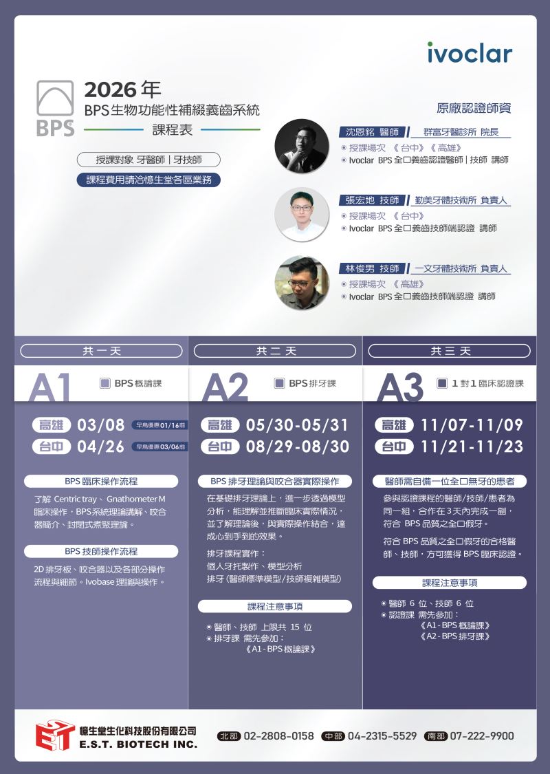 將帶領學員循序掌握從臨床流程、排牙操作,到 一對一臨床認證 的完整技術應用。
